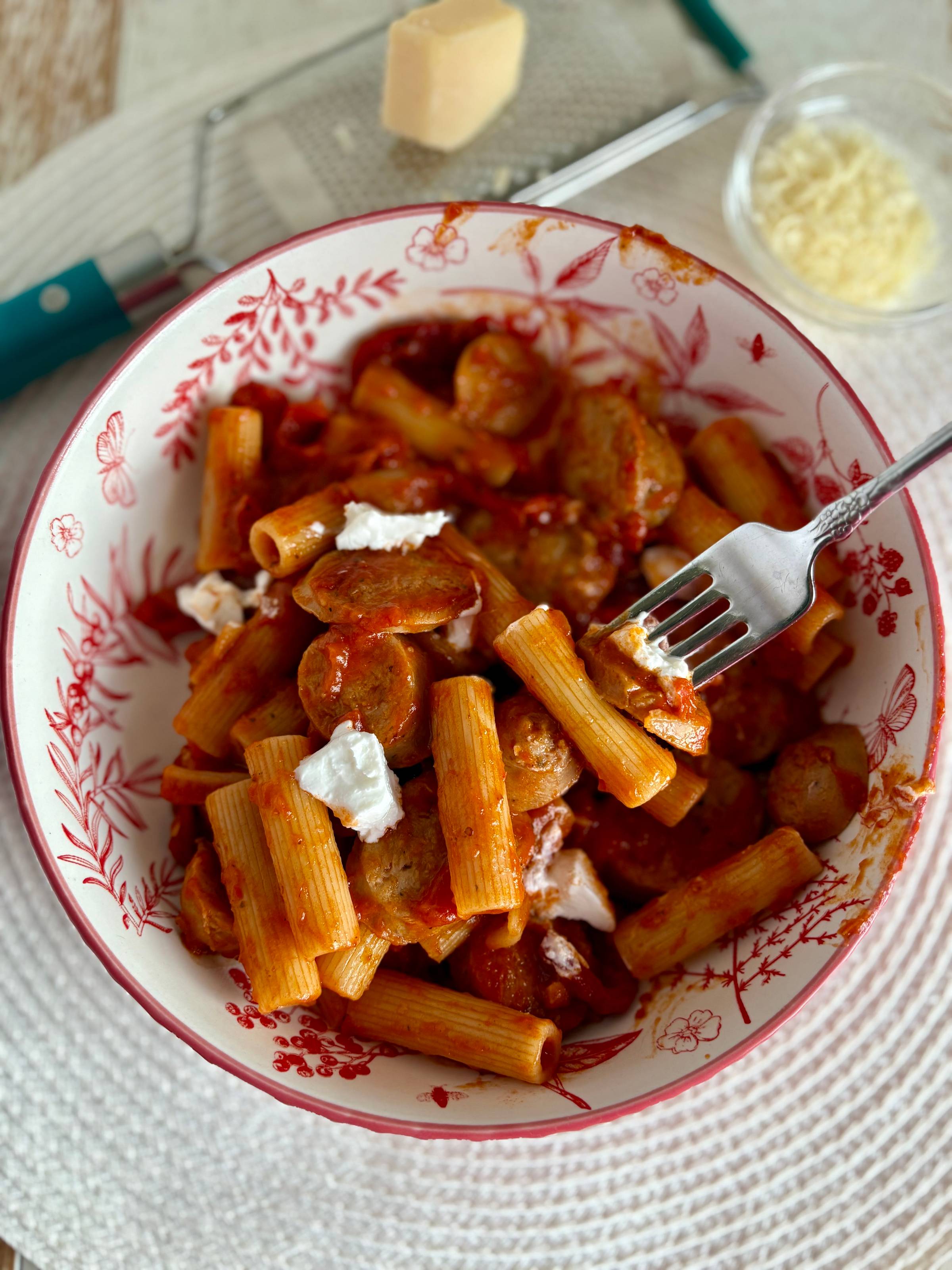 🍅Rigatoni Campagnolo - A simple copycat recipe with sausage and goat cheese.